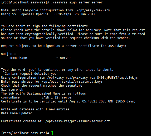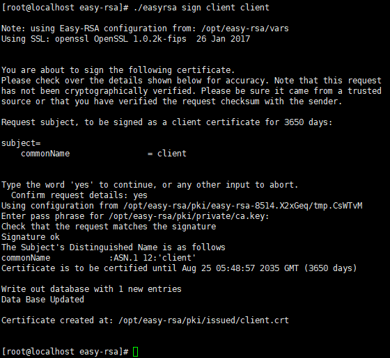 打开set_var EASYRSA_CERT_EXPIRE 参数前面的注释,并修改825为3650