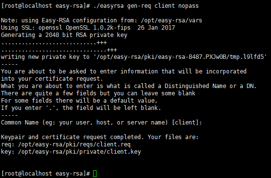 创建根证书,根证书用于ca对之后生成的server和client证书签名时使用